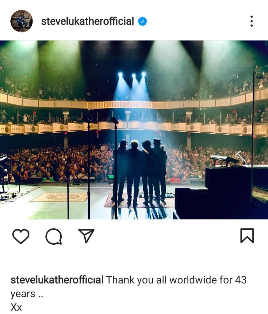 Luke was coming out from the darkness, because in the last incarnation of TOTO problems weren’t missing: a tough lawsuit, David Paich could not tour anymore for health problems, Steve Porcaro didn’t want to and 45 years were a blessing for an incredible career on the road but in the same time he missed his four kids so bad.